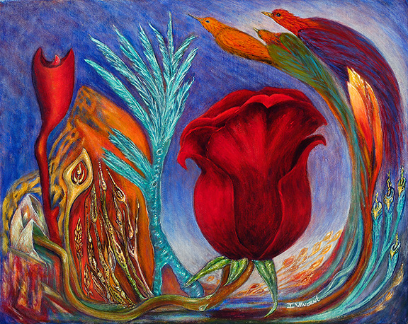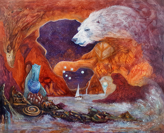 In a world increasingly hungry for meaning and stillness, my contemporary symbolic paintings are created as contemplative works—art meant to be lived with over time. Each piece explores transformation, inner landscapes, and healing for the soul, inviting quiet reflection as well as imaginative discovery.